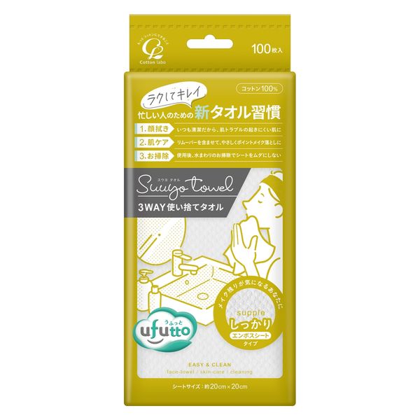 うふっとスウヨタオル しっかり100枚 コットン・ラボ クレンジングタオル フェイシャルタオル