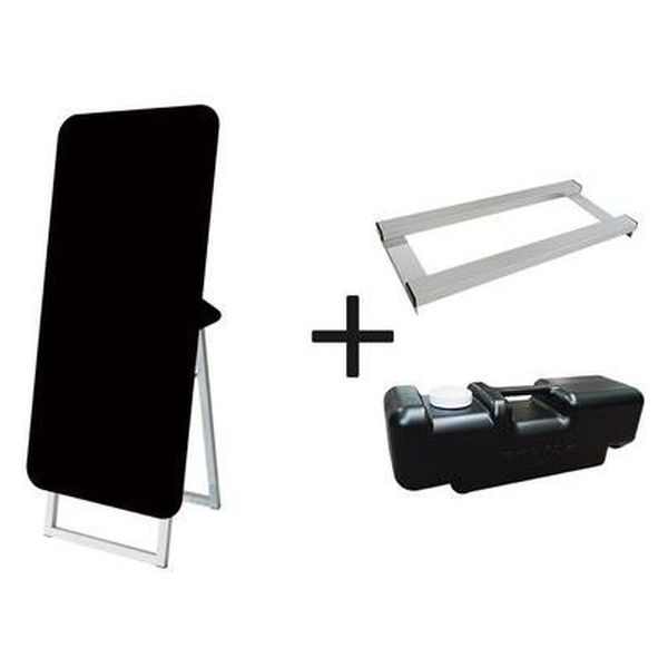 | 材質 | 面板最大サイズ=W440mm×H890mm、フレーム=アルミ押出し/アルマイト仕上(シルバー)、面板=マーカーボード(アルミ複合板(黒)+特殊コーティング)、 | 種類 | ポップルスタンド看板シルエット |