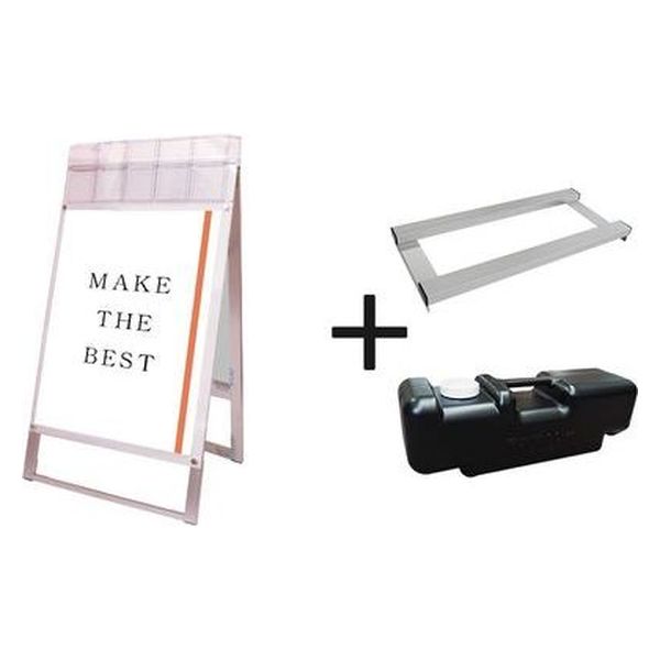 常磐精工 ポスター用スタンド看板マグネジ パンフレットケース付 A1両面ホワイト(屋外用) ウエイトアーム・水タンクセット(直送品)