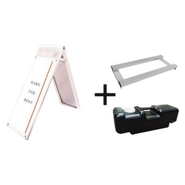 常磐精工 ポスター用スタンド看板パンフレットケース付 A3縦縦ロウ両面ホワイト(屋内用) ウエイトアーム・水タンクセット(直送品)