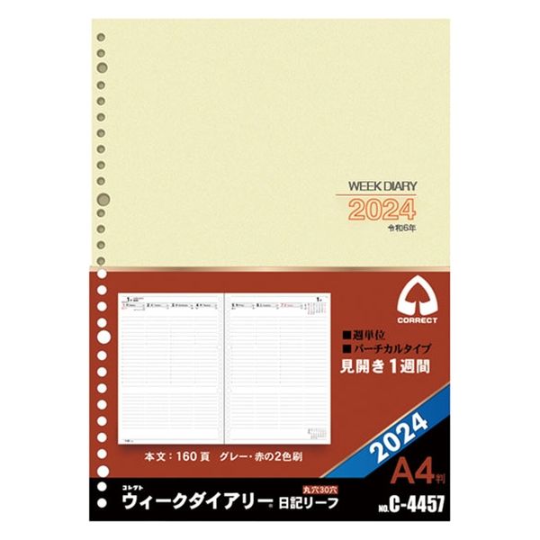 コレクト 日記リーフ ウィーク A4 30穴 C-4457(2024) 2冊(直送品)