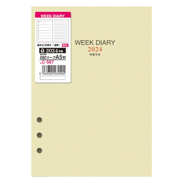コレクト 日記リーフ ウィーク A5 6穴 C-567(2024) 3冊(直送品)