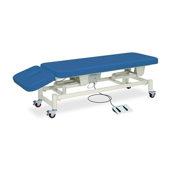 | 商品の特徴 | ●レバー操作のガススプリング式ヘッド角度調節機能付き。15~-45°。●車輪と旋回が同時ロック可能な直径7.5cmダブルロック式キャスター。●電動旋回昇降式で高さを調節できるフットスイッチ操作の電動施術台。 | ||