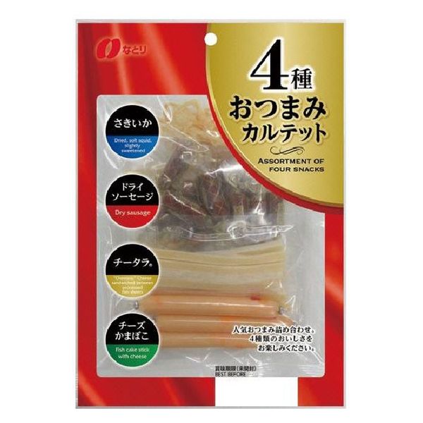 | 商品の特徴 | 人気おつまみ詰め合わせ。4種類のおいしさをお楽しみください。 | ||