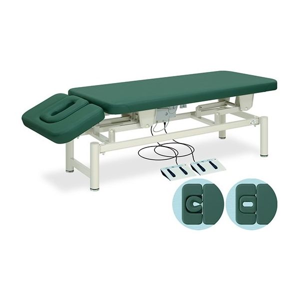 | 商品の特徴 | ●電動式ヘッド角度調節機能付き。15~-45°。フットスイッチ操作。●埋込式ケアーフェイスマット(TB-77C-28)&埋込式無孔マット付き。●電動旋回昇降式で高さを調節できるフットスイッチ操作の電動施術台。 | ||
