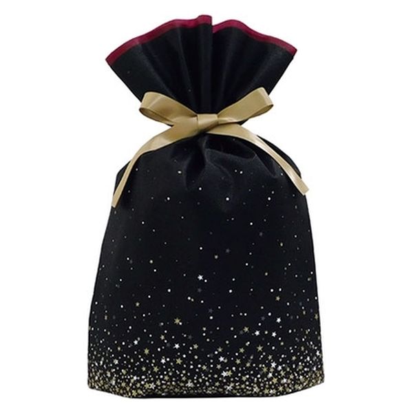 | 商品の特徴 | 金と白とグレーの星が散りばめられた華やかなギフトバッグ。金の星のみラメ加工されています。不織布が二重になっているのでしっかりしています。ギュッと絞るだけで簡単な巾着タイプ。 | ||