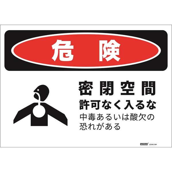 セーフラン安全用品 危険標識ステッカー 密閉空間 254x356mm 表面ラミ加工 J2542-SM 1枚(直送品)