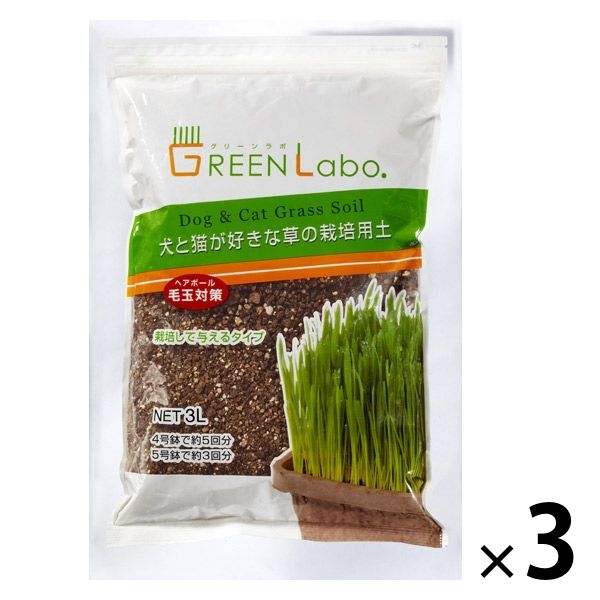 グリーンラボ(GREENlobo)犬と猫が好きな草の栽培用土 3L 3個 猫草 エイムクリエイツ