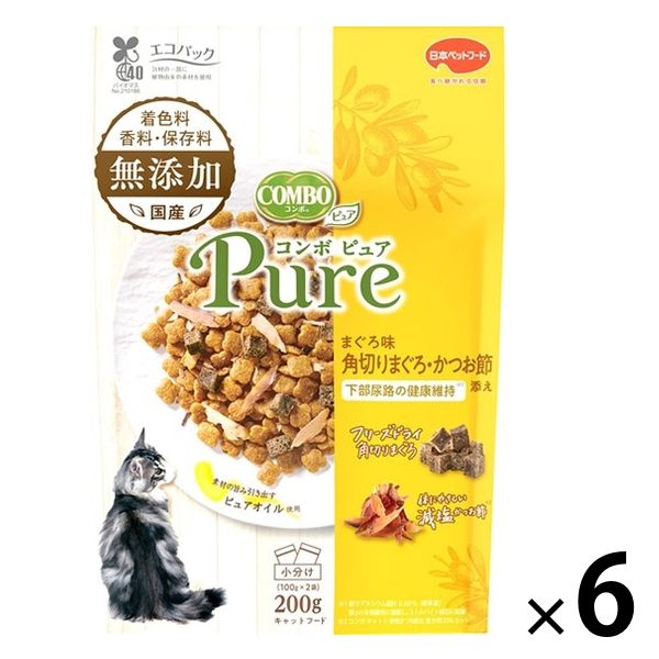 コンボ ピュア キャット まぐろ味・角切りまぐろ・かつお節添え 無添加 国産 200g(小分け2袋)6個 キャットフード