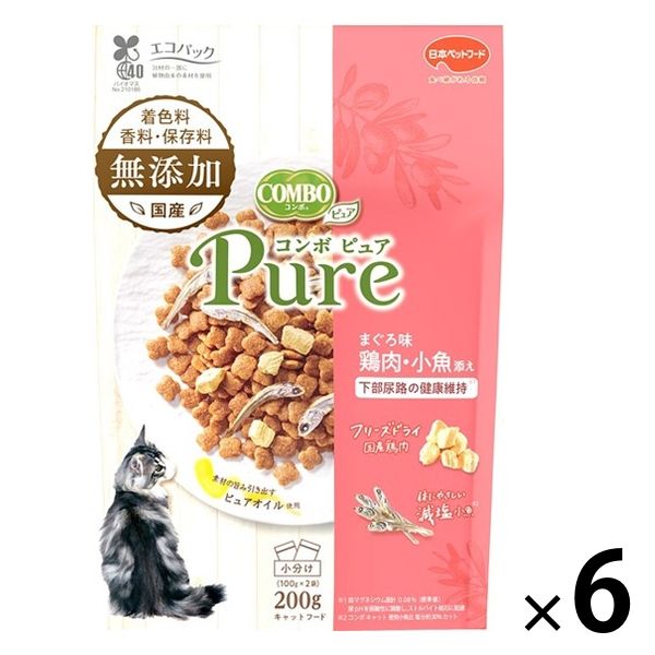 コンボ ピュア キャット まぐろ味・鶏肉・小魚添え 総合栄養食 国産 200g(小分け2袋)6個 キャットフード 猫