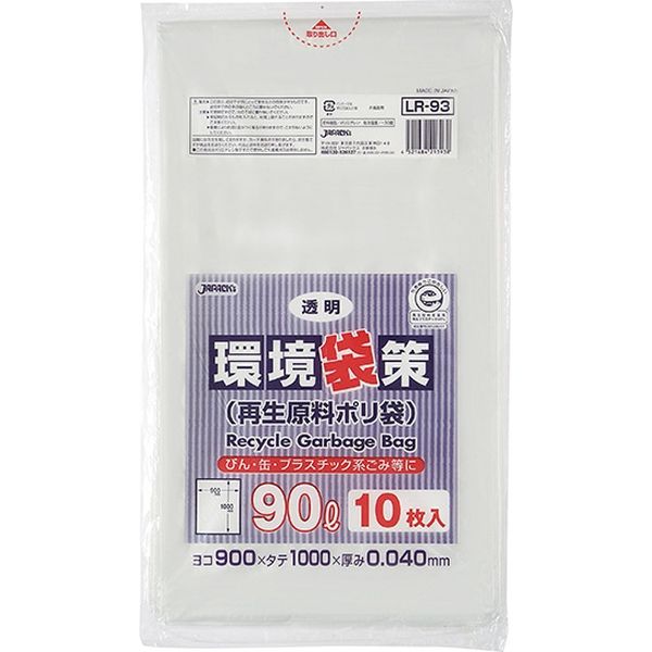 ジャパックス 環境袋策 90L 透明 厚み0.04mm LR93 1冊(10枚)