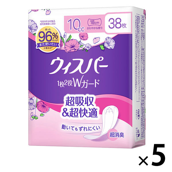 ウィスパー 1枚2役Wガード おりもの&水分ケア さわやかな香り 10cc 19cm 1セット(38枚入×5個) P&G 尿漏れ