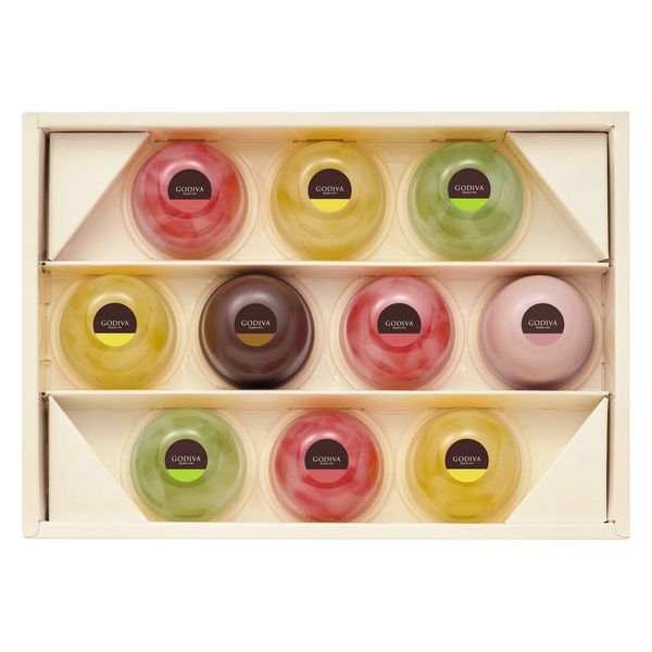 - カカオフルーツジュレ8個(ピーチ3個、レモン3個、ラ・フランス2個) ムースショコラ2個(ショコラ1個、ストロベリー1個)