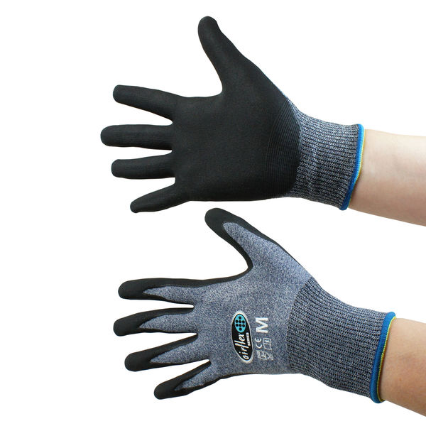 小指と薬指のグリップ力を向上させる小指フィット加工を採用。ニトリルゴム特殊発泡加工により、手の平部分の通気性に優れ、蒸れにくく肌にも優しい。