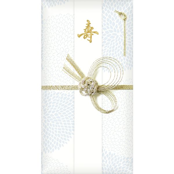 | 商品の特徴 | 高貴な柄とされる菊の大輪がうっすらと印刷された美濃和紙に、ふんわりとやわらかな手触りの和紙が重ねられています。 優しい雰囲気の祝儀袋です。 | ||