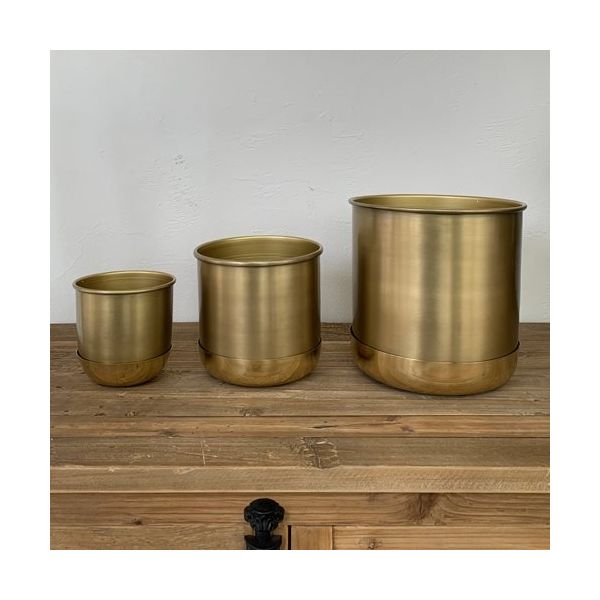 | 商品の特徴 | ●ゴールドのソーサーがアクセントのシンプルなフォルムの鉢カバー。シックなカラーでグリーンがよく映えます。鉢カバーだけでなく、小物入れとしても。ポットとソーサーが取り外し可能なので別々でもお使いいただけます。サイズはφ12、φ16、φ21cmの3タイプございます。CLOVERモダンな空間やエキゾチックな空間にも使えるオリジナルセレクトアイテム。シンプルなフォルムや、重厚感漂う仕上がりは、馴染みがよく印象的なコーディネートが完成します。 | ||