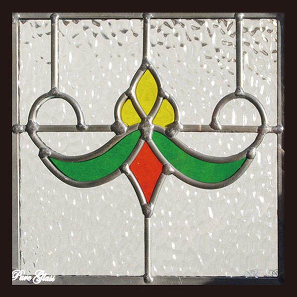 お家のワンポイント・アクセントにぴったりのアンティーク調ステンドグラスです。黄色と緑のコントラストがシンプルながらに力強く訴えます。