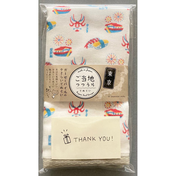 | 商品の特徴 | 歌舞伎、屋形船、お寿司など東京にちなんだ可愛いモチーフをプリントした日本製のてぬぐいタオルです。表面がやわらかガーゼ地、裏面はパイル地となっています。1枚で透明の袋に入っており、THANK YOUのカードも付いています。国内旅行のお客様や海外からのお客様をお迎えする際などにもお使い頂けます。また、プレゼントや粗品、景品、参加賞などにもお使い頂けます。 | ||
