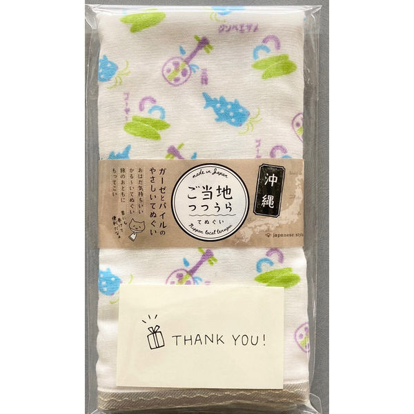 商品の特徴 沖縄県の可愛いモチーフをプリントした日本製のてぬぐいタオルです。表面がやわらかガーゼ地、裏面はパイル地となっています。1枚で透明の袋に入っており、THANK YOUのカードも付いています。国内旅行のお客様や海外からのお客様をお迎えする際などにもお使い頂けます。また、プレゼントや粗品、景品、参加賞などにもお使い頂けます。