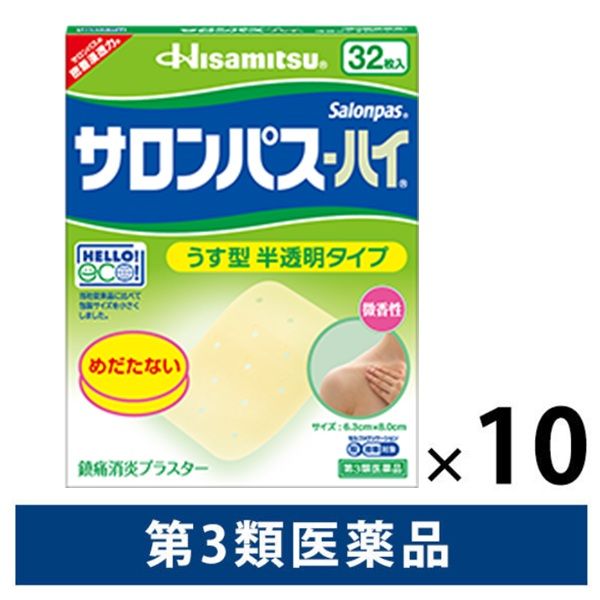 サロンパスーハイ 32枚 微香性 10箱セット 久光製薬 貼り薬 痛み止め 目立ちにくい 湿布・テープ剤 腰痛 肩の痛み【第3類医薬品】