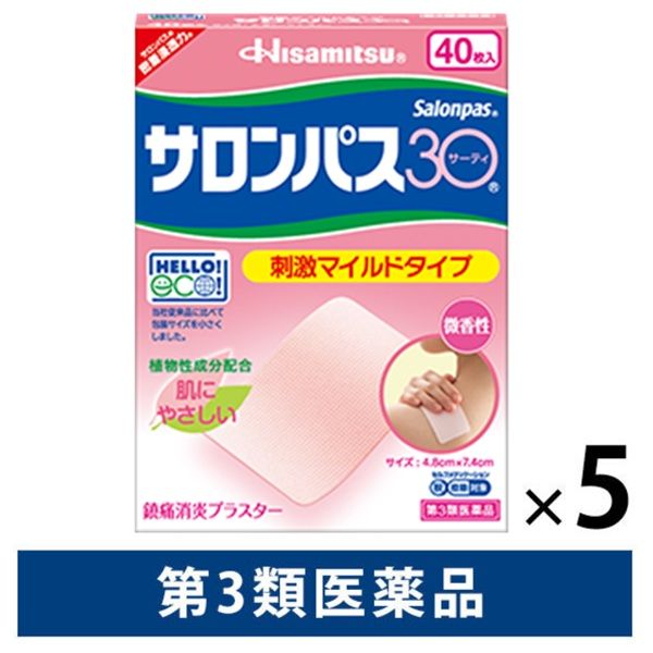 サロンパス30 40枚 微香性 5箱セット 久光製薬 貼り薬 刺激マイルドタイプ 肩こり 筋肉疲労 筋肉痛【第3類医薬品】