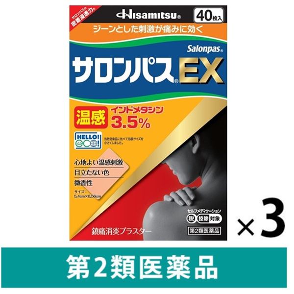 サロンパスEX温感 40枚 微香性 3箱セット 久光製薬 貼り薬 インドメタシン 肩こりに伴う肩の痛み 腰痛【第2類医薬品】