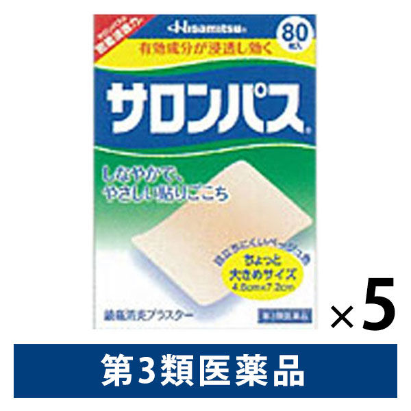 サロンパス 80枚 5箱セット 久光製薬 貼り薬 目立ちにくい 湿布・テープ剤 腰痛 肩の痛み【第3類医薬品】