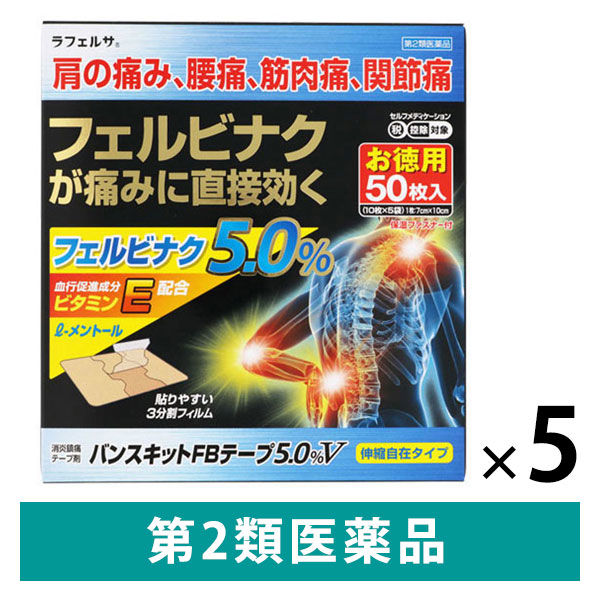 ラフェルサ バンスキットFBテープ5.0%V 50枚 5箱セット 三友薬品 貼り薬 テープ剤 フェルビナク配合 筋肉痛 腱鞘炎【第2類医薬品】