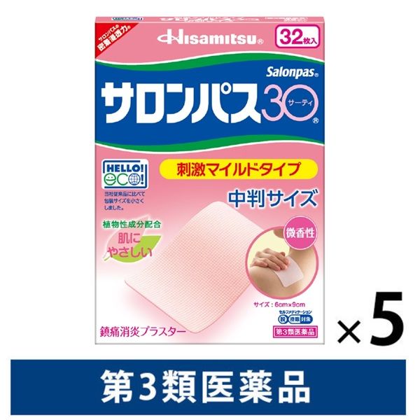 サロンパス30中判 32枚 微香性 5箱セット 久光製薬 刺激マイルドタイプ 肩こり 腰痛 筋肉痛【第3類医薬品】