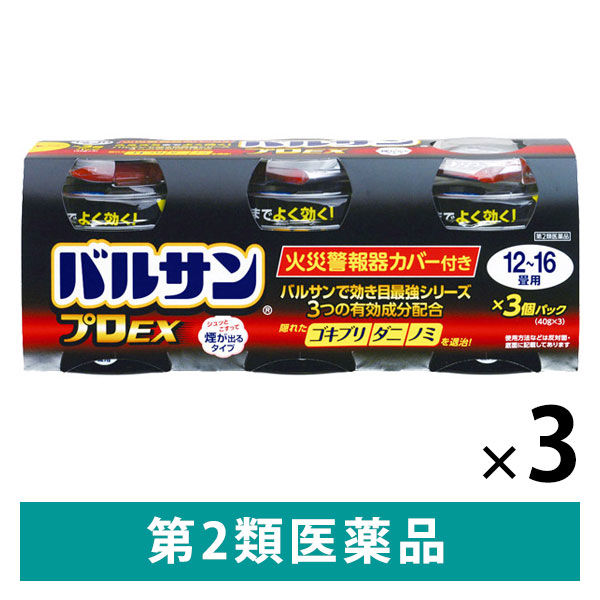 バルサンプロEX 12~16畳用 3個パック 3セット 630211 レック 殺虫剤 火災警報器カバー付き ゴキブリ ダニ ノミ【第2類医薬品】