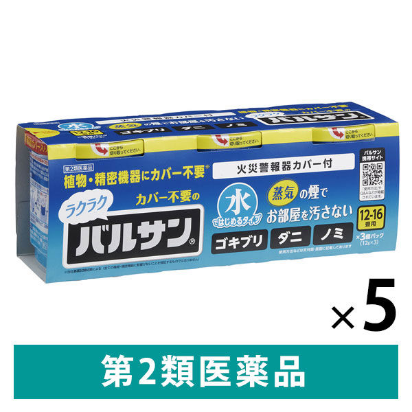 水ではじめるラクラクバルサン 12-16畳用 3個パック 5セット レック 殺虫剤 火災警報器カバー付き ゴキブリ ハエ 蚊成虫【第2類医薬品】