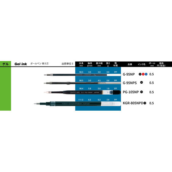 | 本体サイズ | 98×6×6mm | 商品仕様 | ゲル替芯 0.7 パーカータイプ |