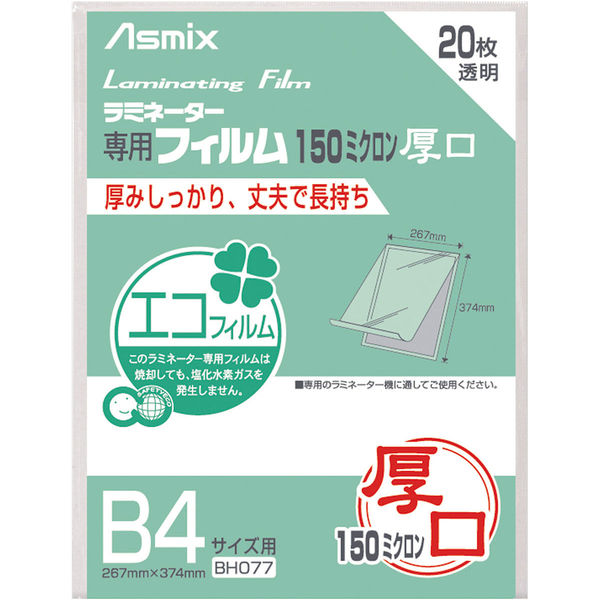 アスカ ラミネートフィルム B4 150μ 20枚 BH077 1袋