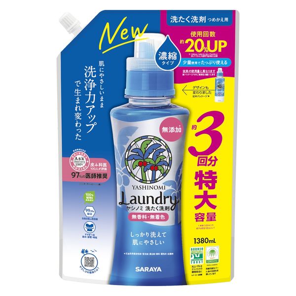 ヤシノミ洗たく洗剤 濃縮タイプ 詰め替え 特大 1380mL 1個 衣料用洗剤 サラヤ