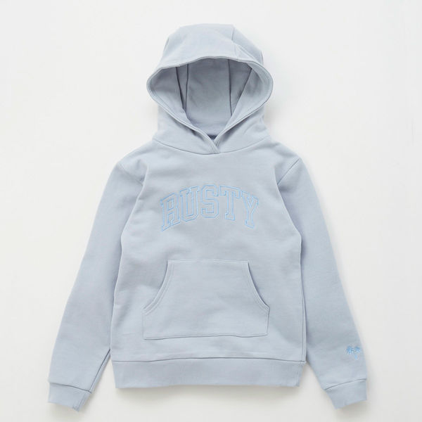 | 商品の特徴 | トレンド感のあるカレッジロゴを生かした刺繍デザインパーカー。袖口にはRUSTYらしいヤシの木のワンポイント刺繍。少しヴィンテージ感のあるような色合いや刺繍デザインがポイントです。 | ||
