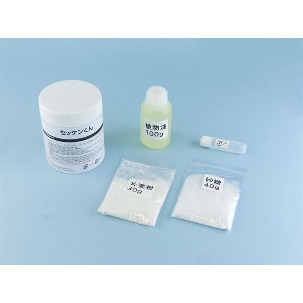 | 商品の特徴 | ●[特長]●湯浴による加熱やろ過などの処理がなく、試薬を順番に混ぜてこねていくだけでセッケンが作れます。●作製時間は約20分。授業の中で実験から考察まで行えます。●型抜きを使ったり、着色料や香料を加えるとさらにセッケンをアレンジできます。●植物油(100g)●溶媒(10g)●砂糖(40g)●片栗粉(30g)●円柱ポリ容器 | ||