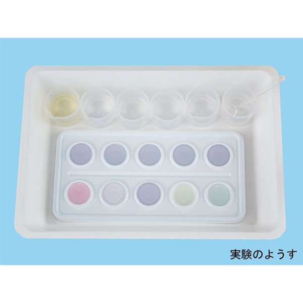 | 備考 | 【返品について】お客様のご都合による返品はお受けできません。●※お届け時は試薬や器具は小分けされていません。●※ムラサキキャベツパウダーは付属の広口試薬びんを使い、純水500mLに溶かしてお使いください。●※小・中・高校理科実験向け教材です。 | ||