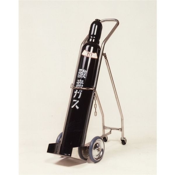 | 商品の特徴 | ●本体及びクサリなど、主な部分にステンレスを使用した防塵防錆効果を高めました。新たに中段にも容器受けとクサリを増設。ボンベのより安全な移動・運搬が可能です。●車幅(mm)350奥行(mm)850車高(mm)1000車輪径(mm)125X2個車輪形状ウレタンタイヤ車輪径(mm)副車輪75X3個車輪形状ナイロンキャスター重量(kg)7 | ||