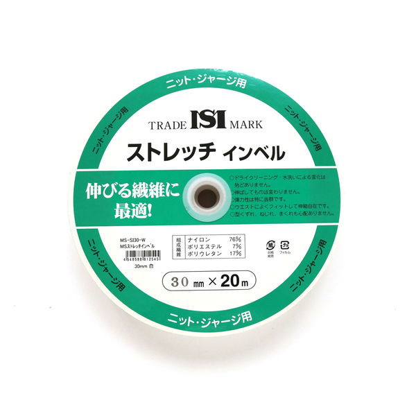 | 商品の特徴 | ニット、ジャージ用ストレッチインベルで、ドライクリーニング・水洗いによる変化はほとんどありません。伸ばしても巾は変わらず、弾力性は特に抜群です。ウエストによくフィットして伸縮自在、型崩れ、ねじれ、まくれも心配ありません。 | ||
