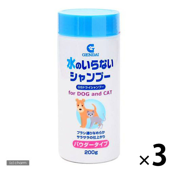 水のいらないシャンプー GSドライシャンプー 犬猫用 200g 3個 現代製薬