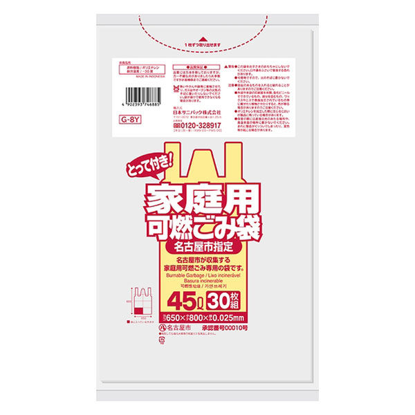 名古屋市指定袋 可燃 45L とって付 半透明 30枚 0.025mm G-8Y 1袋(30枚入)日本サニパック