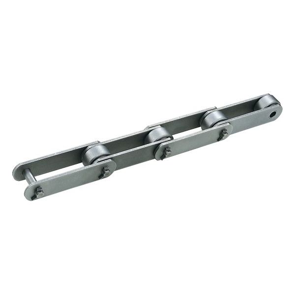 | 商品仕様1 | ●・コンパクト設計。・DT仕様の2倍の引張強さ。・ローラ許容負荷の向上。・Rローラ最も基本的で汎用性のある形式です。ローラの負荷容量が大きく、摩擦抵抗が低いのが特長です。・Fローラ簡単に横振れ防止ができます。ラフな使い方や、通常のスラットコンベヤなどに適します。・Sローラスプロケットのかみ合い時に衝撃や摩耗を緩和する効果があります。ローラ外径がプレート幅よりも小さい物です。●仕様ATタイプ継手リンク寸法系インチ系ピッチチェーン番号RF650ローラ形式アタッチメント形式A1アタッチメント間隔ピッチP(mm)152.4ローラローラ直径R(mm)ローラフランジ径F(mm)ローラ触軌幅E(mm)ローラ心違いe(mm)ローラZ(mm)内リンク内幅W(mm)30.2プレート幅H(mm)38.1プレート厚さT(mm)6.3ピン直径D(mm)11.3ピンL1+L2(mm)69ピンL1(mm)32.5ピンL2(mm)36.5アタッチメント(mm)S32アタッチメント(mm)C50アタッチメント(mm)2Cアタッチメント(mm)X64アタッチメント(mm)2Xアタッチメント(mm)Vアタッチメント(mm)K | ||