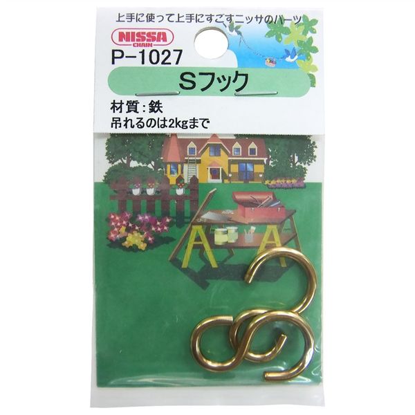 ニッサチェイン 金Sフック 2.3mmX22.6mmX111.8mmX28.0mm 2個入 P-1027 1セット(80個:2個×40セット)(直送品)