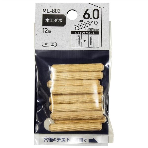 和気産業 木工ダボ Φ6mm×40mm 12本入り ML802 1セット(312個:12個×26セット)(直送品)
