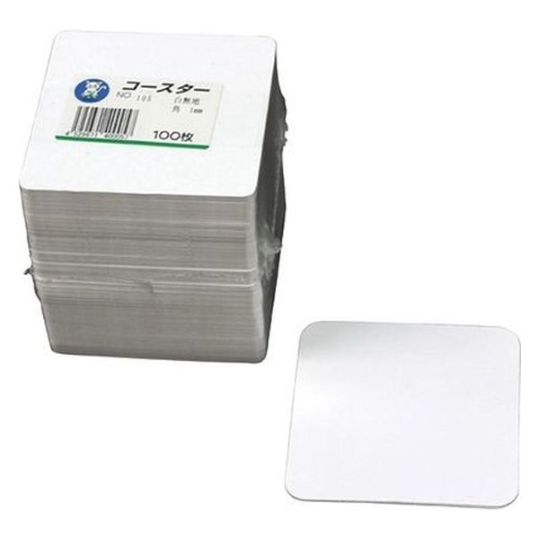 | 商品の特徴 | 白無地角コースター90x90(1mm)100枚入 | ||