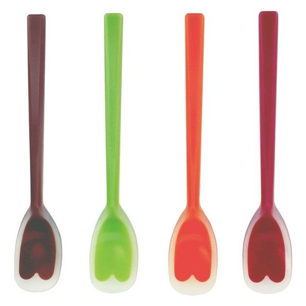 シリコン製のハンドルで、滑りにくく手に馴染みやすいです。熱いものもすくえます。先端はお口に運びやすい形状です。