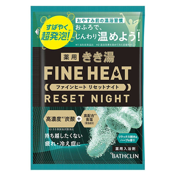 きき湯 炭酸入浴剤 ファインヒート リセットナイト 50g お湯の色 ナイトグリーン(透明タイプ) アース製薬
