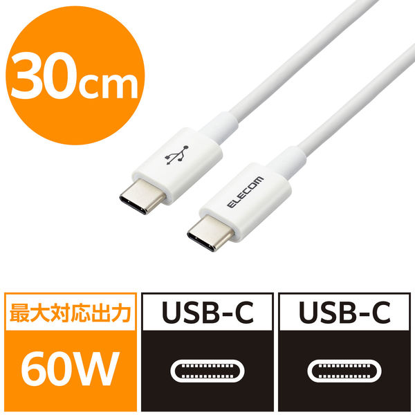 タイプCケーブル (USB-C to C) PD対応 60W 耐久 30cm 白 MPA-CCYS03NWH エレコム 1本
