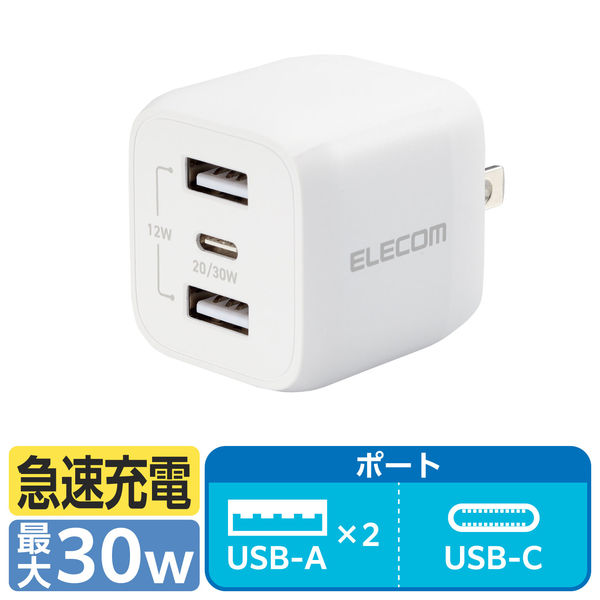 USB充電器 タイプC Type-C PD 32W USB-C×1 A×2 白 MPA-ACCP4032WH エレコム 1個