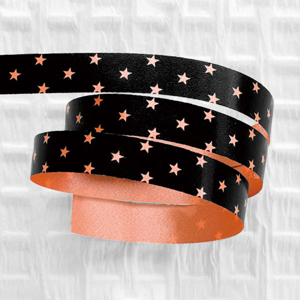 黒にオレンジの星柄がハロウィンにぴったりなカーリングリボンです。